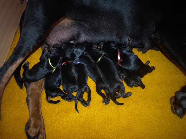On July 6th our Freya Betelges got her litter and there is 5 black males and 4 black females.